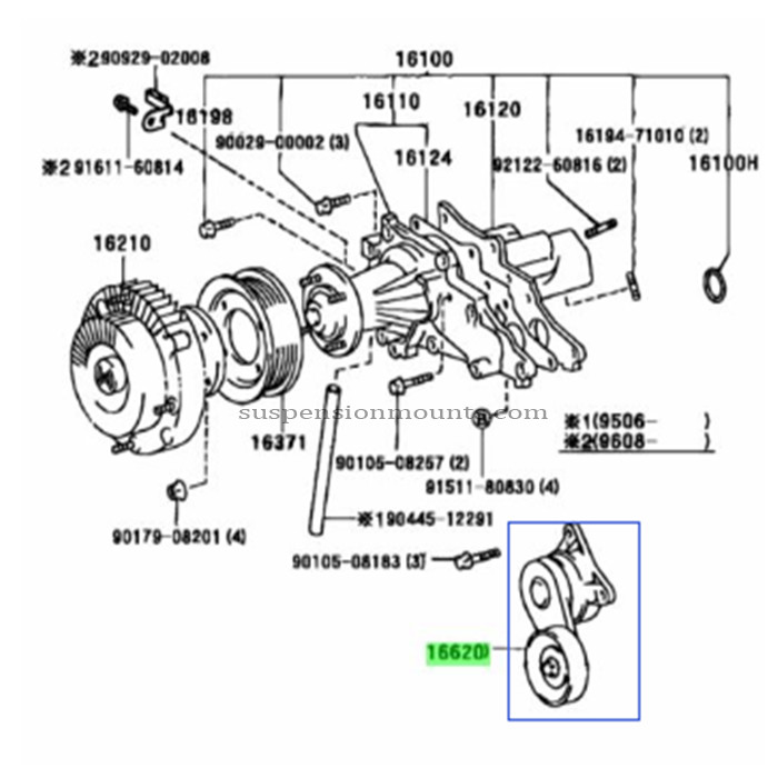16620-0W011 16620-0W101 Toyota TENSIONER ASSY, V-RIBBEDToyota Mark II7 รุ่น 1992-1994
